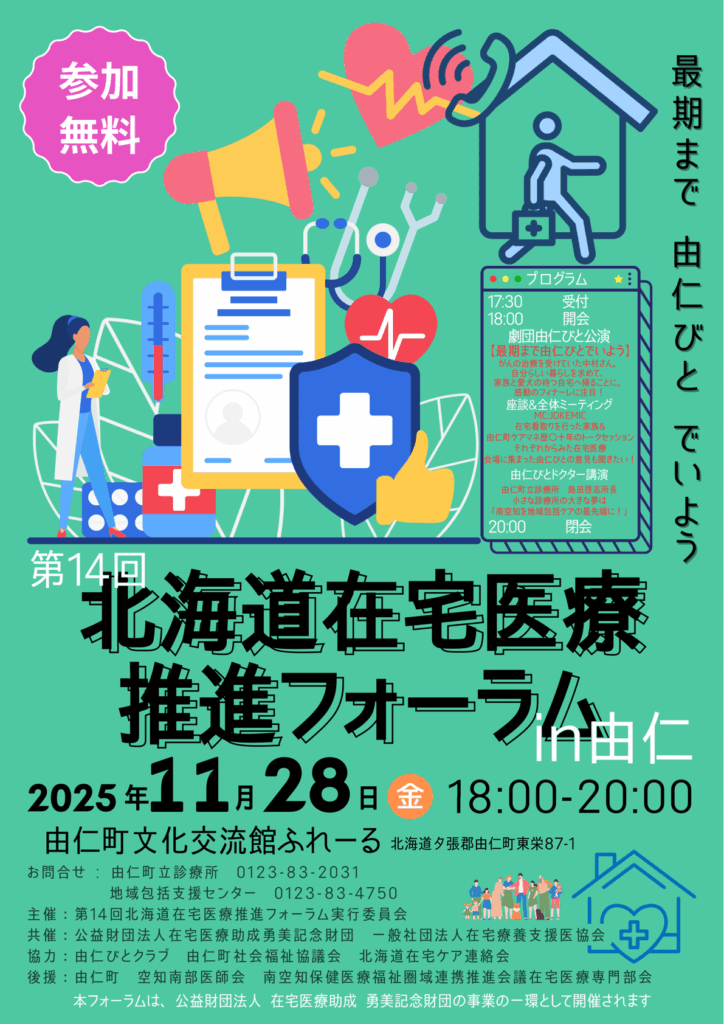 「最期まで由仁びとでいよう」をテーマに『北海道在宅医療推進フォーラムin由仁』を開催します。