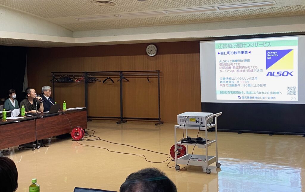 島田所長から当院の4つの取り組み①南空知バイタルリンク②在宅医療と介護の相談窓口③おたがいさまネット④診療所駆けつけサービスについて説明を行いました。